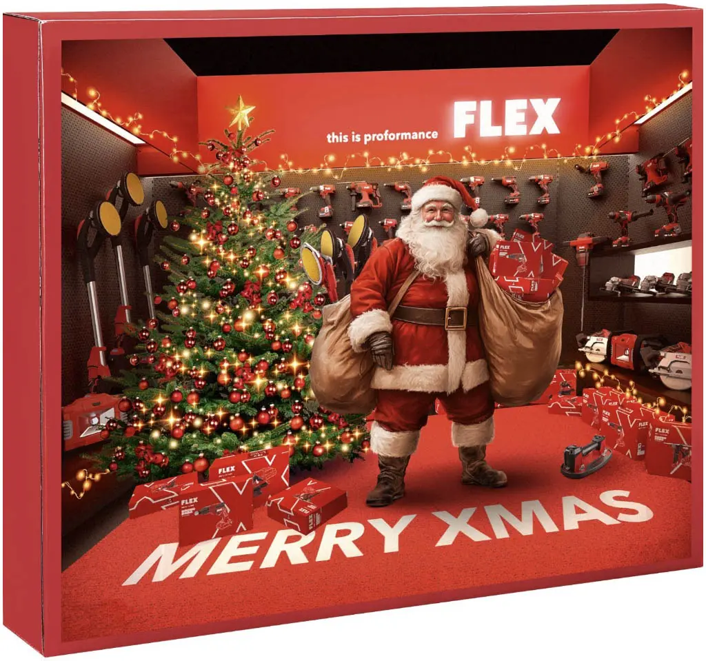 Adventní kalendář 2025 s akumulátorovým šroubovákem 4 V, rozsáhlou sadou bitů a vrtáků a limitovanou edicí ručního příslušenství FLEX