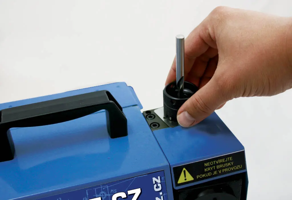 Luftgekühlt. Eine einfache Einstellung und kurze Schleifdauer bestimmen diese Schleifmaschine für schnelles und operatives Schärfen vor allem von den CZ-Bohrern voraus.