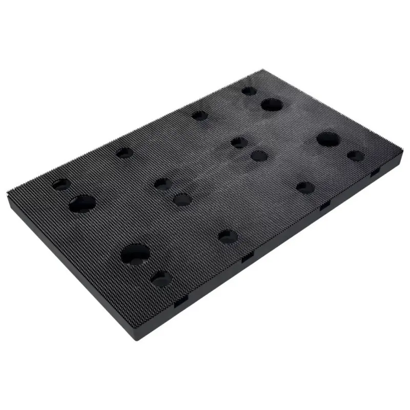 Brusná unášecí deska s ochranou hran z vysoce odolného speciálního materiálu s otvory na odsávání (12x). Vhodná pro běžné brusivo. Na broušení úzkých a menších ploch.
