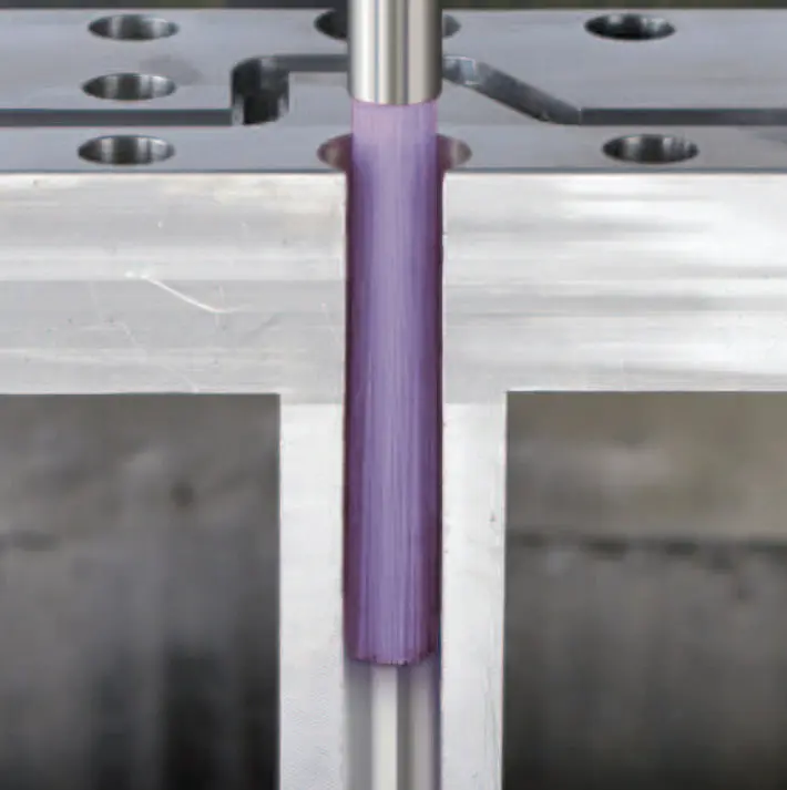 Cross brush made of ceramic fibers for efficient deburring.