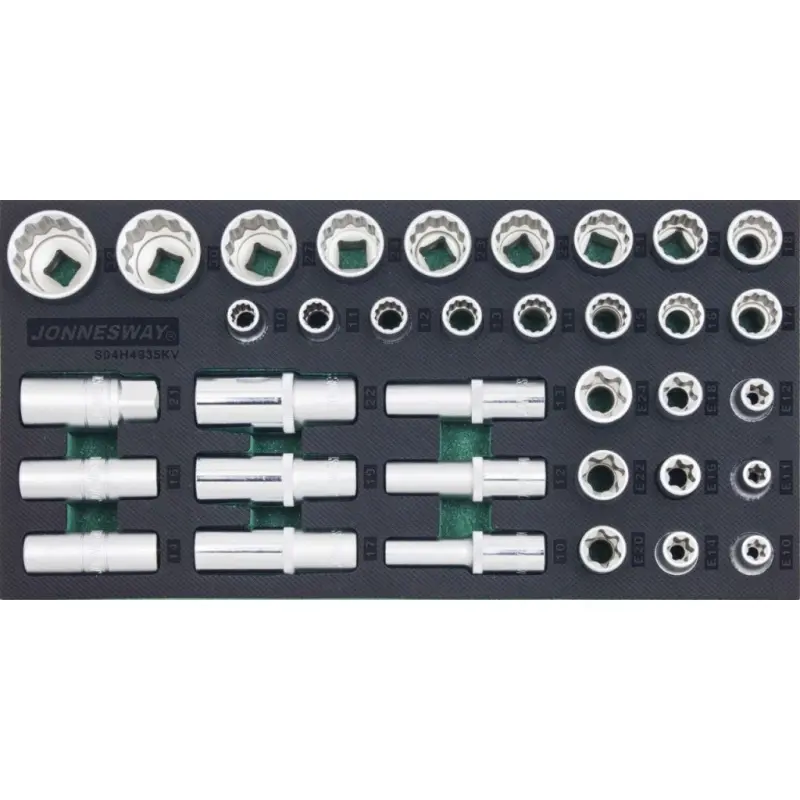 Pěnový modul EVA, vel. „B“ (190 x 380 mm): Souprava 35 nástrčných hlavic 1/2” pro autoservis a dílnu