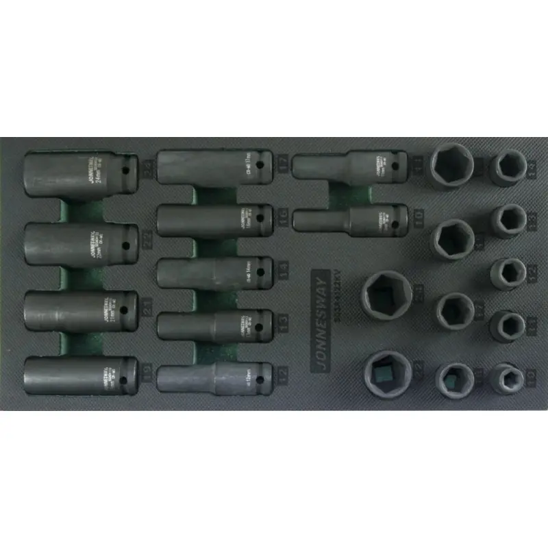 Pěnový modul EVA, vel. „B“ (190 x 380 mm): Souprava krátkých a prodloužených nástrčných úderových hlavic, velikosti 10-24 mm, 22 ks