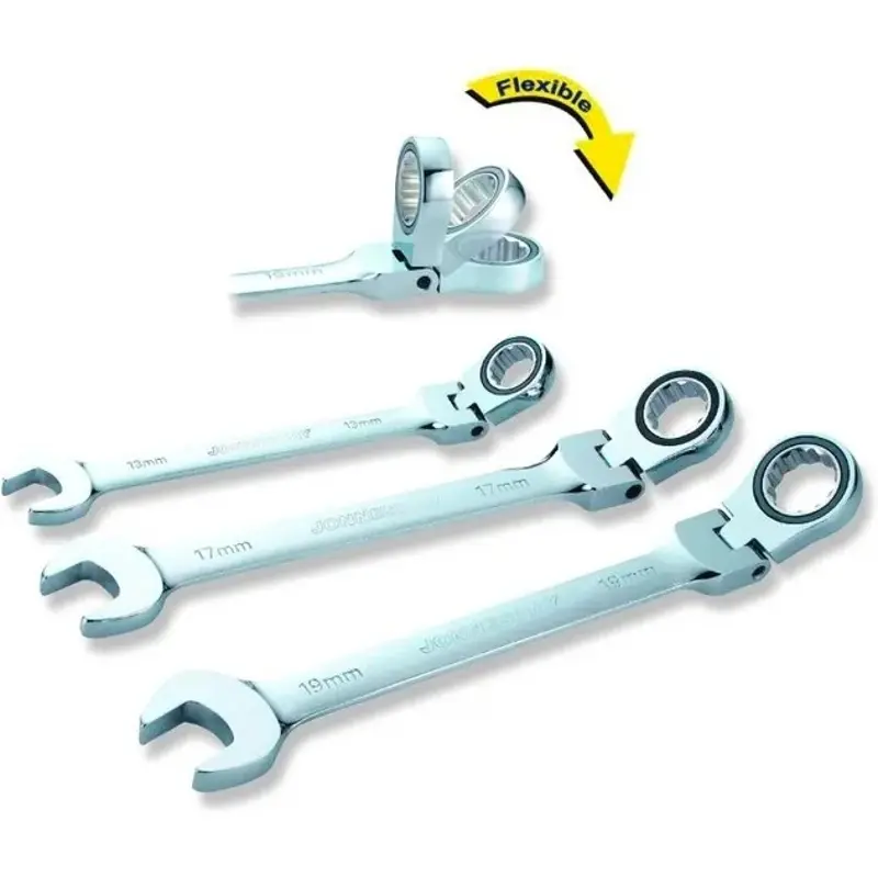Očkoplochý klíč s ráčnou a kloubem, chrom-vanadiová ocel, leštěný povrch