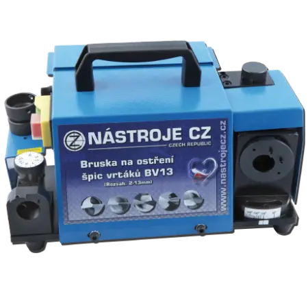 Bruska na spirálové pravotočivé vrtáky vyrobené z rychlořezných a cobaltových ocelí v rozsahu průměrů 11-26mm. Rozsah nastavení úhlu špice je 90-140° + Bruska na vrtáky BV13 rozsah 2-13mm
