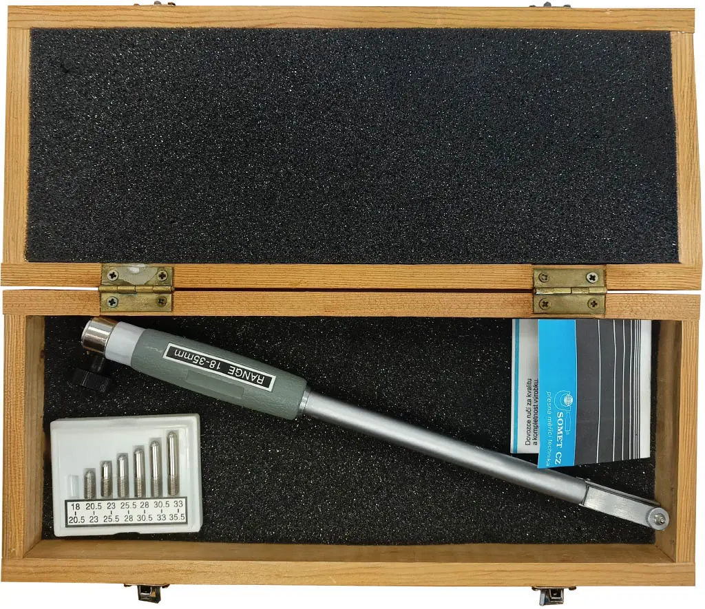 Dělení závisí na typu použitého indikátoru, doteky jsou osazeny tvrdokovem (jen 90723010 má speciální doteky), hlavice je samostředící (kromě 90723010), upínací průměr indikátoru 8 mm, samocentrovací hlavice, součástí dodávky je indikátor 60/0-3x0,01mm, 52003410. Maximální hloubka měření je 40 mm.