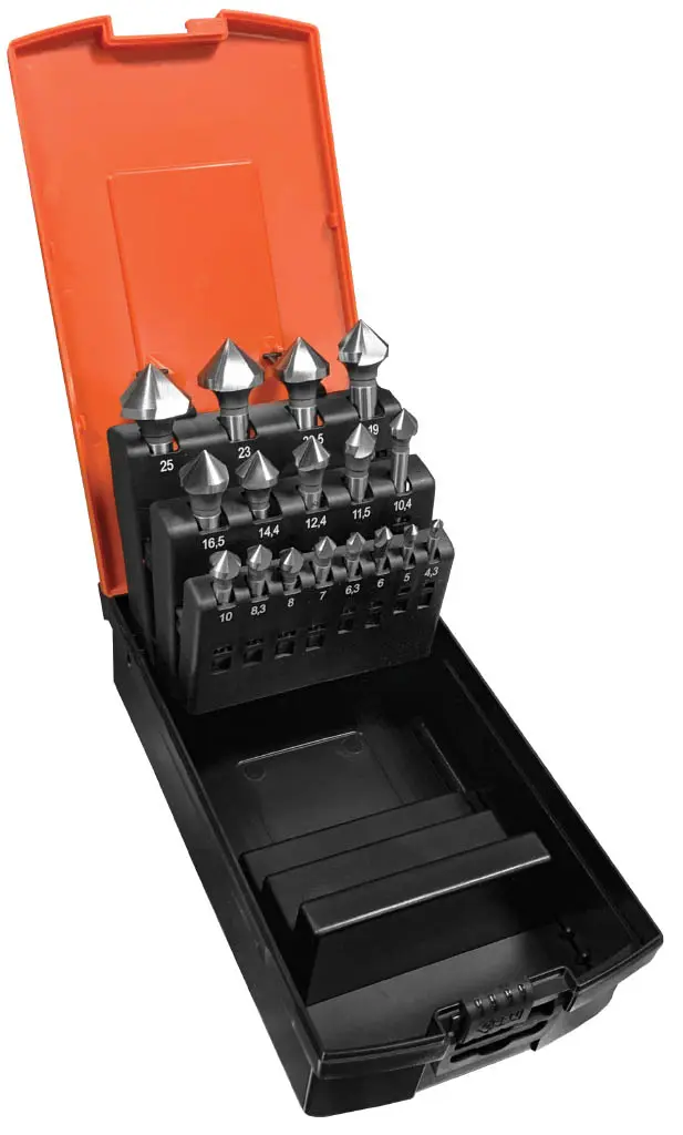 Set of countersinks with taper shank 90° CZ745 D4,3;5;6;6,3;7;8;8,3;10;10,4;11,5;12,4;14,4;16,5;19;20,5;23;25 HSSCo5