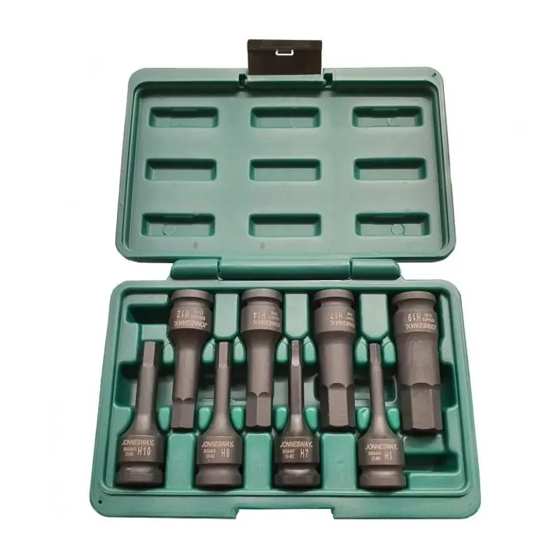Robustní sada zástrčných imbusových hlavic značky JONNESWAY je určená pro rázové utahováky elektrické, akumulátorové i pneumatické.