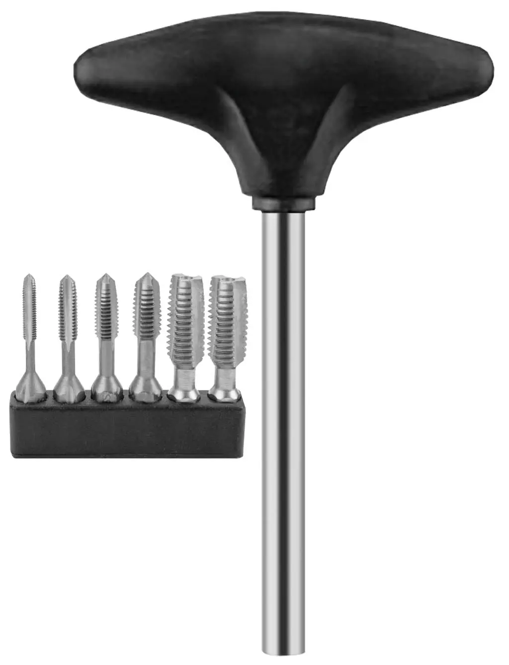 Souprava závitořezných bitů se šestihrannou stopkou 6,35 mm (1/4") M3;M4;M5;M6;M8;M10 HSS + šroubovák s "T" rukojetí