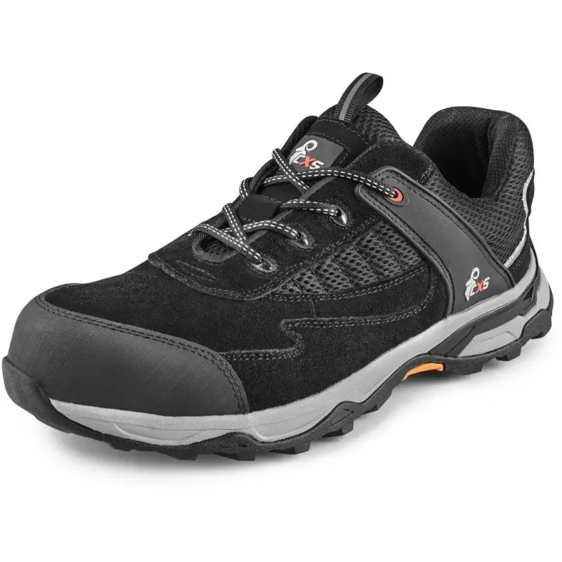 Bezpečnostní polobotka s ocelovou špicí, reflexní doplňky. Materiál: svršek z 1,4 - 1,6 mm hovězí broušené kůže kombinovaný s prodyšnou tkaninou a PU doplňky