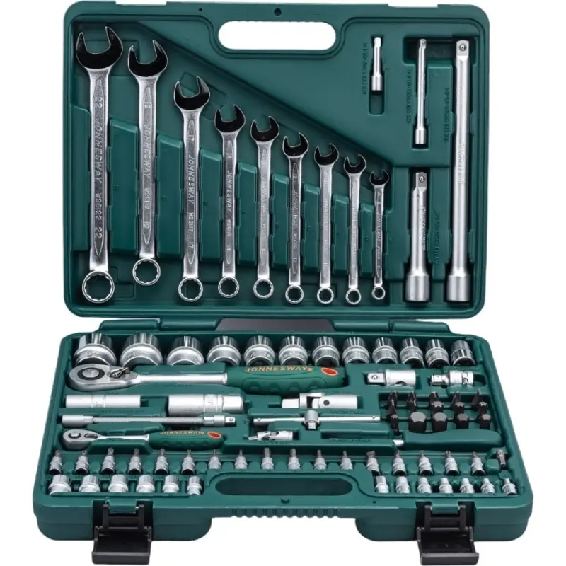 Kombinovaná gola sada s nářadím 1/4” a 1/2” a očkoplochými klíči, 82 kusů nářadí, v plastovém kufru